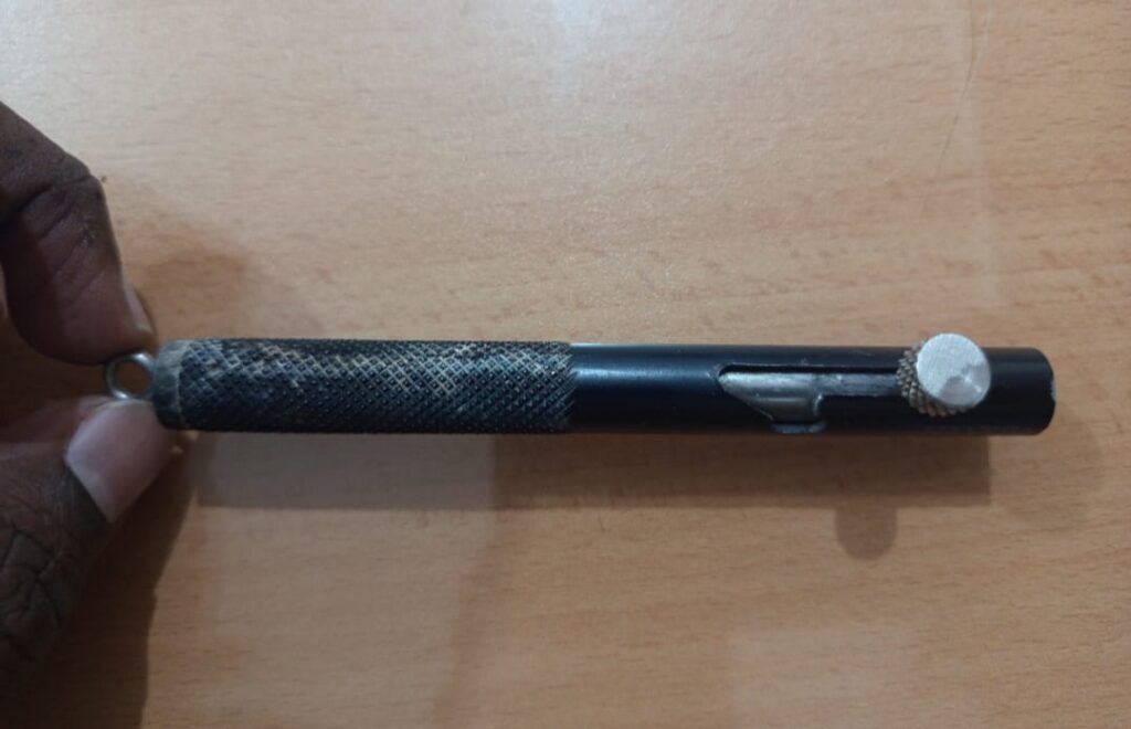 විදෙස් රටක නිෂ්පාදිත පෑනක ස්වරූපයේ එක් උණ්ඩයක් පමණක් යෙදිය හැකි අර්ධ ස්වංක්රීය ගිනි අවියක්, එයට යොදන පතොරොම් 02 ක් හා භාවිතා කරන ලද පතොරොම් කොපු 05 ක් සමඟ සැකකරුවෙකු අත්අඩංගුවට ගෙන තිබෙනවා.