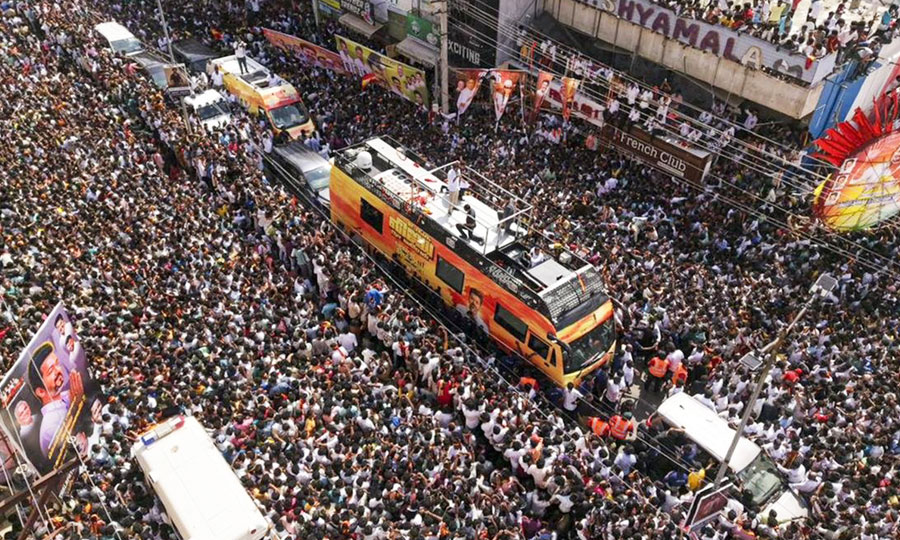 තමිල්නාඩු ප්රාන්තයේ “කරූර්” දිස්ත්රික්කයේ ඊයේ පැවති මෙම දේශපාලන රැලියට දහස් ගණනක ජනකායක් එක්ව සිටි බව වාර්තා වනවා.
