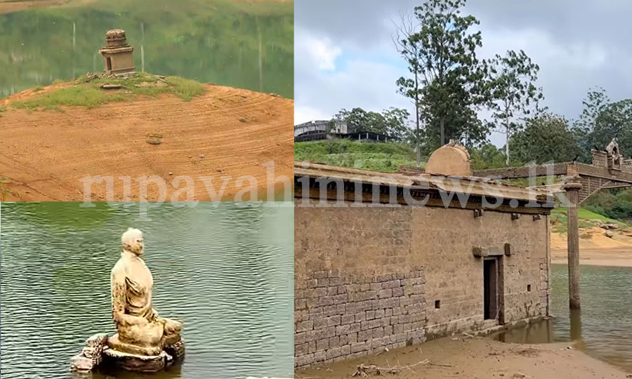ජලාශ දෙකේම ජල මට්ටම ශීඝ්රයෙන් පහළ බැසීම හේතුවෙන් ජලාශය ඉදි කිරිමෙදි මතු වූ නටඹුන් රැසක් සහ දූපත් රැසක් යළි මතුවෙමින් පවතින අයුරු අප කැමරාවේ සටහන් වී තිබුණා.