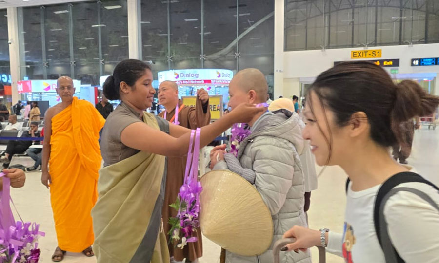 අමෙරිකා එක්සත් ජනපදයේ ජිවත්වන වියට්නාම ජාතික ස්වාමීන් වහන්සේලා, මෙහෙණින් වහන්සේලා හා දායකදායිකාවන් ඇතුළු 86 දෙනෙකුගෙන් සමන්විත බෞද්ධ දූත පිරිසක් ඊයේ (17 ) රාත්රීන කටුනායක බණ්ඩාරනායක ජාත්යින්තර ගුවන් තොටුපළින් දිවයිනට පැමිණියේ ය.