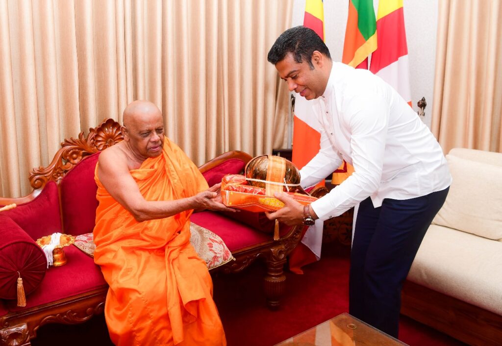 පළමුව අමාත්යවරයා මල්වතු මහා විහාරයේදි, මල්වතු මහානායක අතිපූජ්ය තිත්බටුවාවේ ශ්රී සුමංගල ස්වාමින් වහන්සේ බැහැදැක ආශිර්වාද ලබාගත්තා.