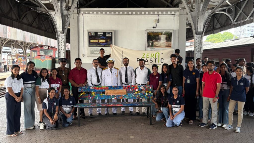 ඉවතලන ප්ලාස්ටික් බෝතල් මූඩී වලින් විශේෂ වේදිකා බංකුවක් මරදාන දුම්රිය ස්ථානයට…..