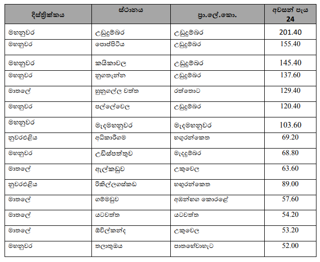 ආපදා කළමනාකරණ මධ්යස්ථානය විසින් අද උදෑසන 6.00ට නිකුත්කරන ලද නිවේදනයට අනුව වැඩිම වර්ෂාපතනය උඩුදුම්බරින් වාර්තා වනවා.