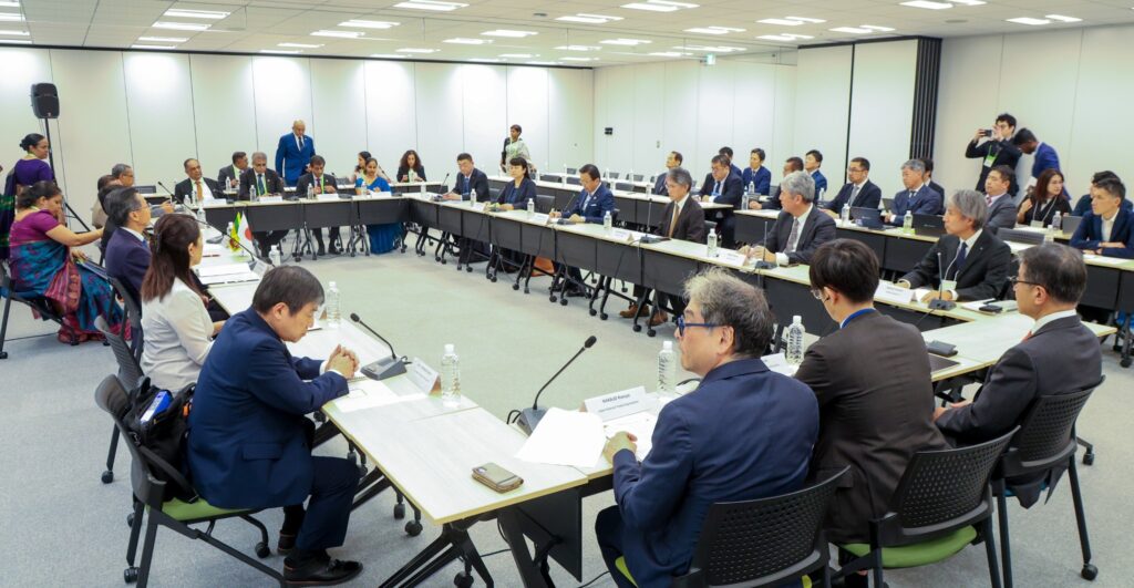 ජපානයේ නිල සංචාරයක නිරත ජනාධිපති අනුර කුමාර දිසානායක මහතා එරට විදේශ වෙළෙඳ සංවිධාන මූලස්ථානයේදි ජපානයේ ප්ර්මුඛ පෙළේ ව්යාරපාරිකයින් සමග ඊයේ වට මේස සාකච්ඡාවකට එක්වුණා. එහිදි ශ්රීය ලංකාවේ පවතින නව ආයෝජන අවස්ථා පිළිබඳව ජනාධිපතිවරයා විසින් පෙන්වා දෙනු ලැබුවා.