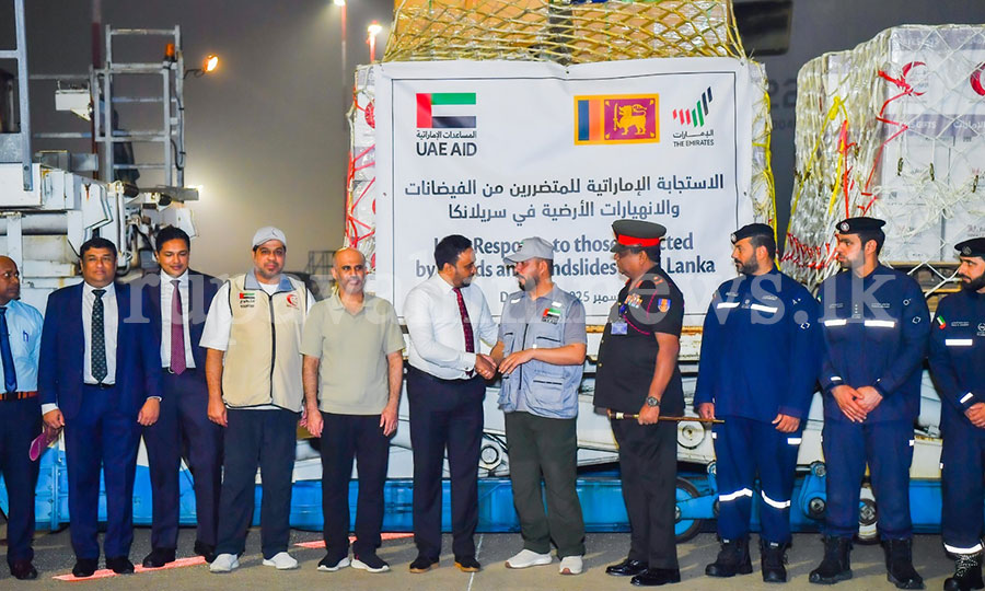 ආපදා තත්ත්වයෙන් විපතට පත් ජනතාව වෙනුවෙන් එක්සත් අරාබි එමීර් රාජ්යයේ ආධාර රැගත් ගුවන් යානයක් අද (02) අලුයම මෙරටට ළඟා වුණා.
